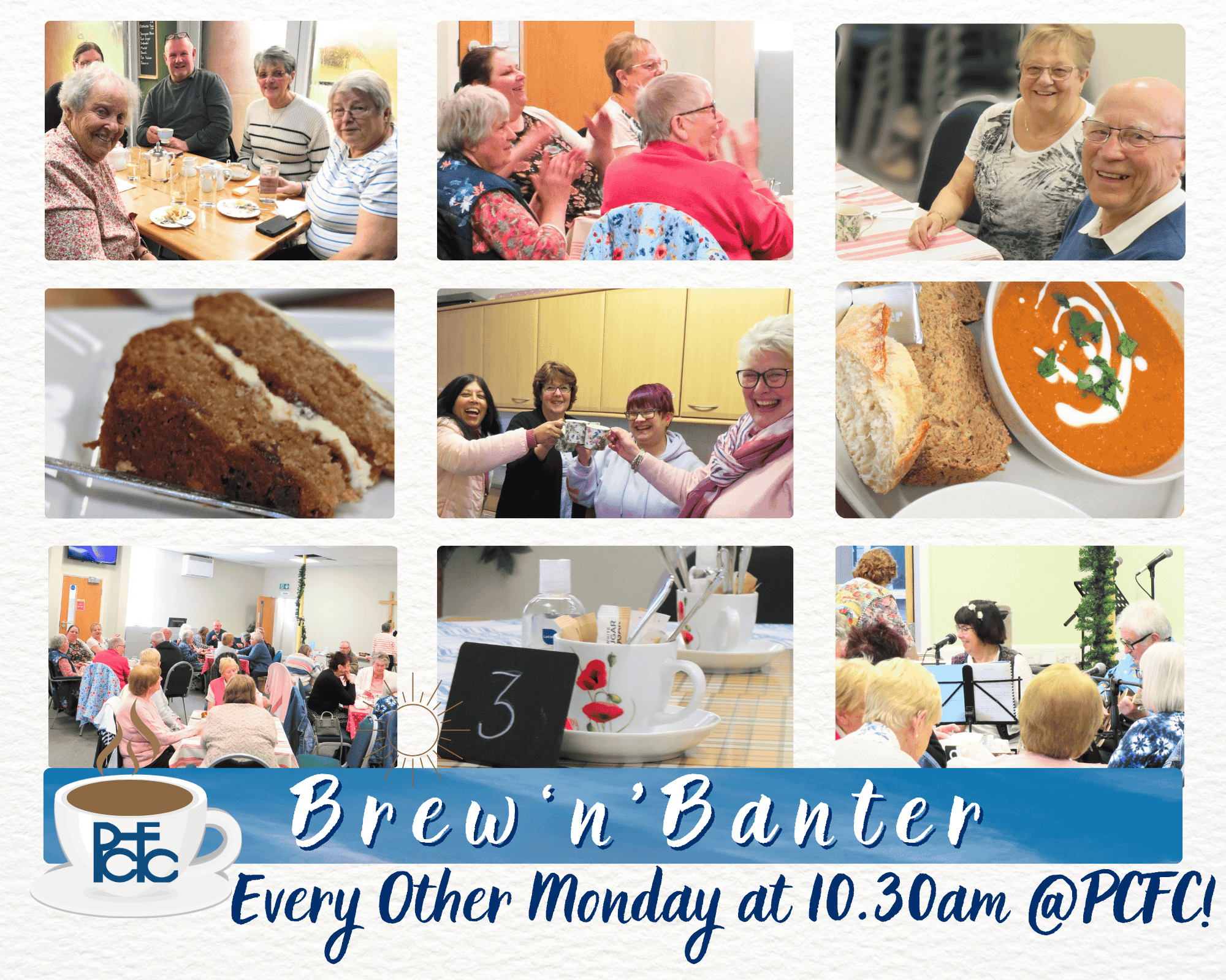 “Brew ‘n’ Banter” commenced as a follow-up to our Warm Welcome Hub. It offers an open space for guests to enjoy a brew, a slice of homemade cake and friendship: from 11 o clock every other Monday. Everyone is welcome: bring a friend to make new friends!
